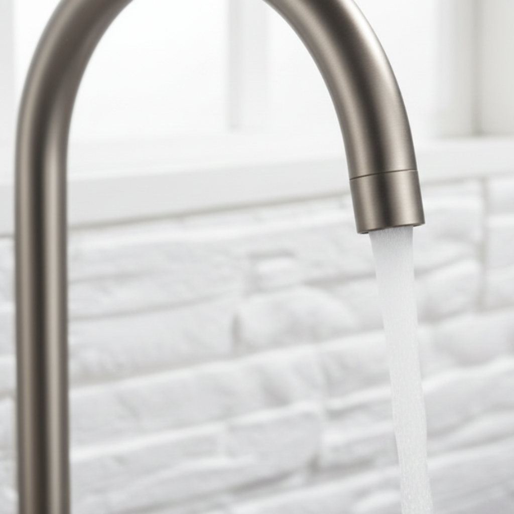 Robinet cuisine à bec incurvé en acier inoxydable rotatif à 360°