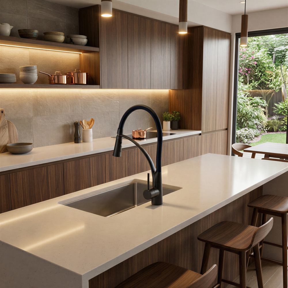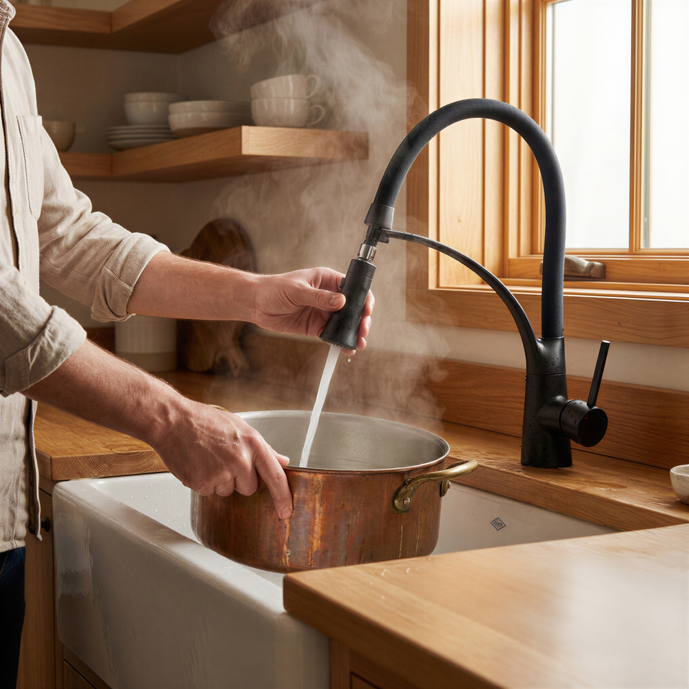 Grâce à sa rotation 360° et son flexible souple, ce robinet suit le moindre de vos gestes. Remplissez une marmite sur le plan de travail ou passez d'un bac à l'autre sans effort. Une maniabilité absolue pour une expérience de cuisine fluide, sans contrainte ni frustration.